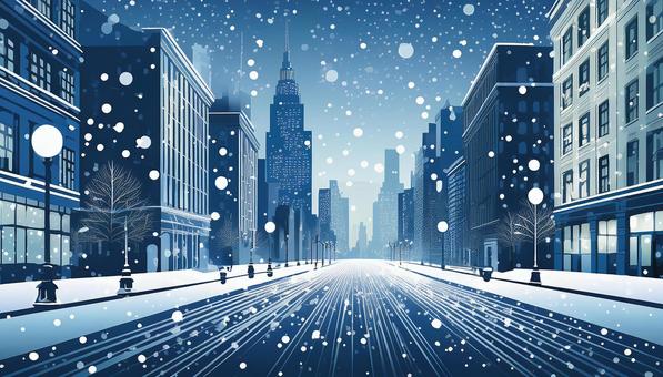 高層ビルが立ち並ぶ夜の街並みの風景画