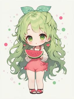 スイカモチーフの服装をした女の子