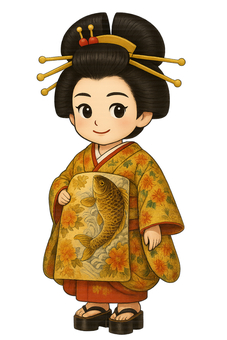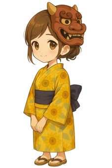 獅子面をかぶる浴衣姿の少女ミニキャラ
