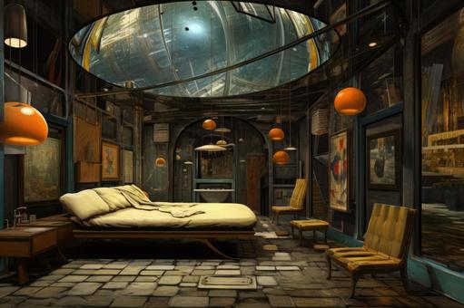 夜の暗い階段の風景画_ホラーゲーム背景画