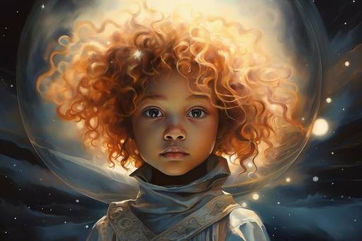 星空背景の少年イラスト