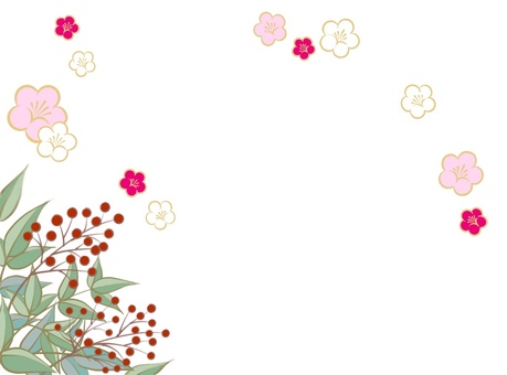 年賀状背景・南天、梅花