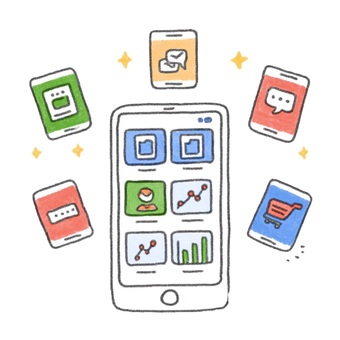 スマホアプリとデータ管理イラスト