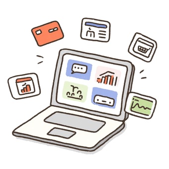 ノートパソコンとデジタルアプリ