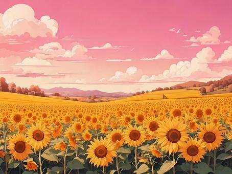 一面ひまわり畑の風景画_晴れた真夏の風景