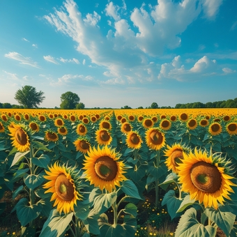 一面ひまわり畑の風景画_晴れた真夏の風景