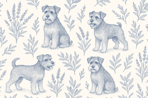 シュナウザー犬と植物の模様