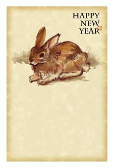 年賀状 水彩の野うさぎ