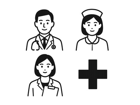 医療スタッフと十字マーク