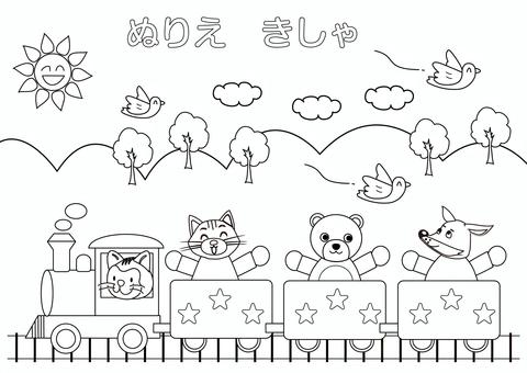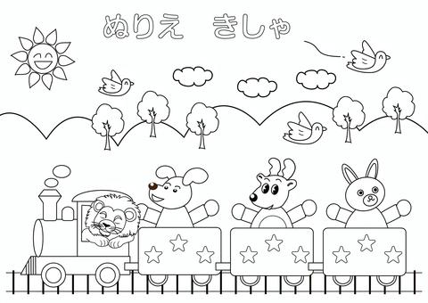 塗り絵 汽車の中の動物・3両編成・いぬ