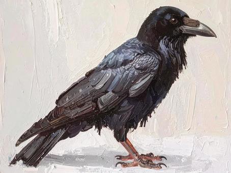 油彩タッチのカラスのイラスト
