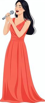 マイクで歌うドレス姿の女性の立ち絵素材