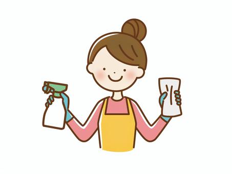拭き掃除する女性