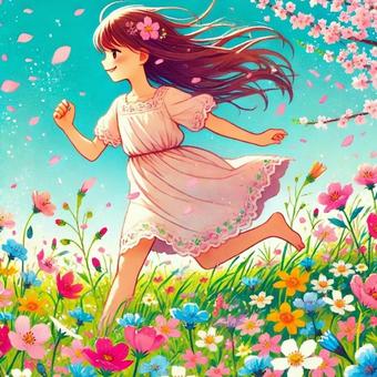 お花畑を走る女の子