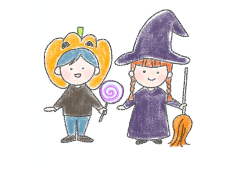 ハロウィン仮装をする子供たち