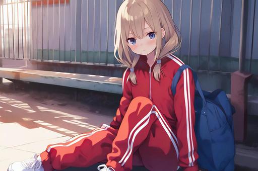 座り込むジャージ女子