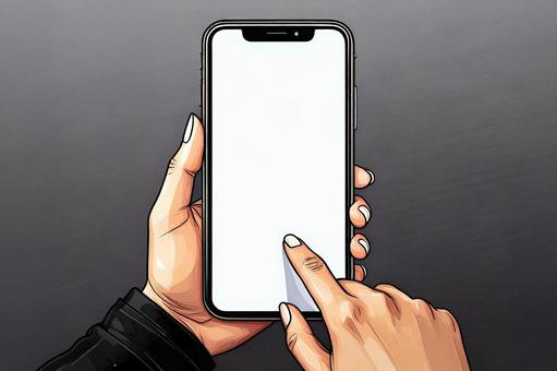デフォルメされたスマホを持つ手
