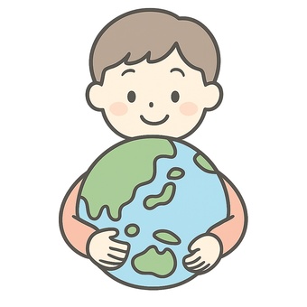 地球を抱きしめる男の子