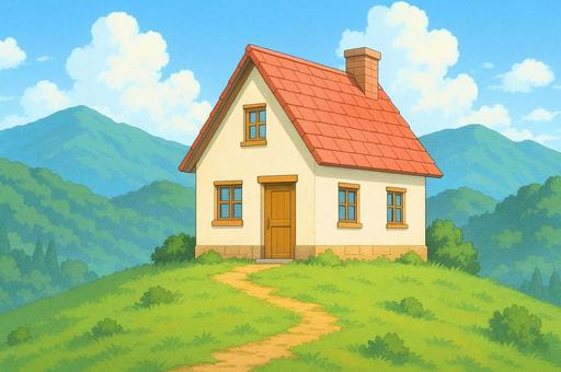 丘の上の赤い屋根の家