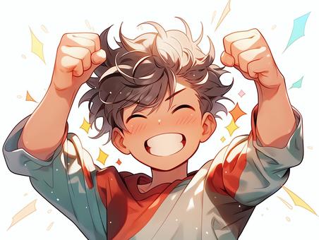 ニカッとした笑顔でガッツポーズする少年1