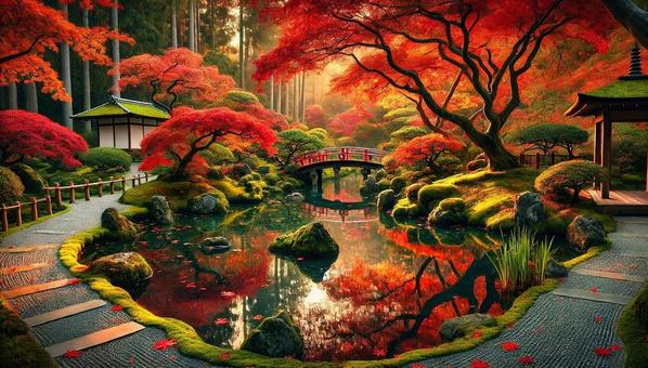 秋の紅葉が彩る静寂の庭園