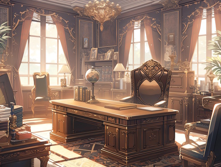光が満ち白い花々が彩る豪華な寝室_背景画