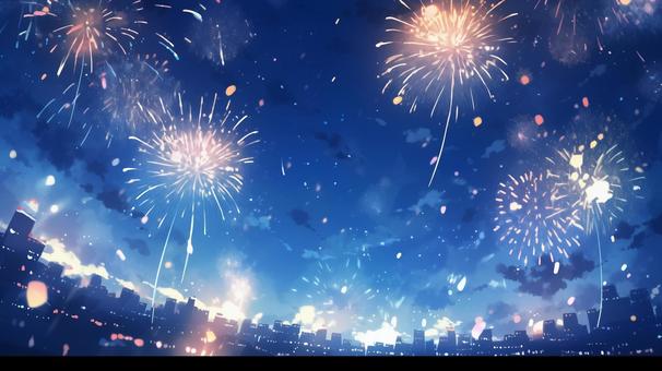 打ち上げ花火・スターマイン 背景青