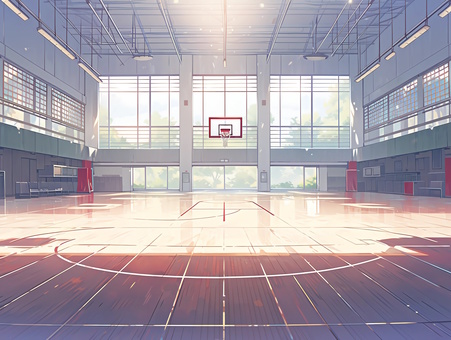 明るい陽光の射し込む開放的な体育館_背景
