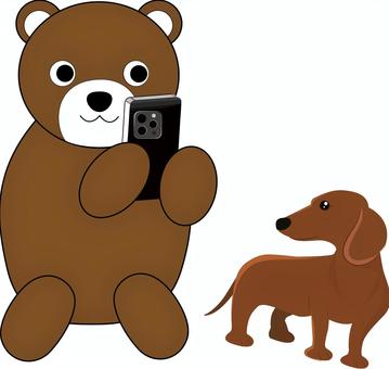 スマホで撮影する熊・犬