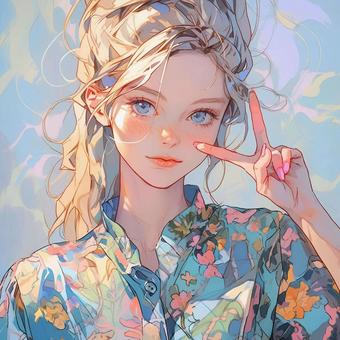 ピースする女性