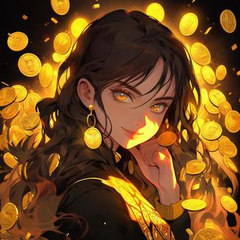 大量の金貨と女の子