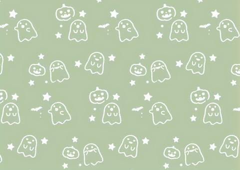 おばけのハロウィンパーティーパターン緑系