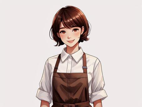 カフェの女性店員のイラスト