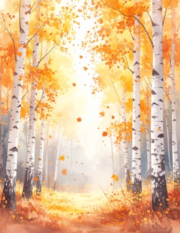 富士山と紅葉の秋らしい水彩画風イラスト。