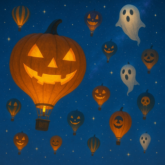 夜空に浮かぶハロウィンの気球祭り