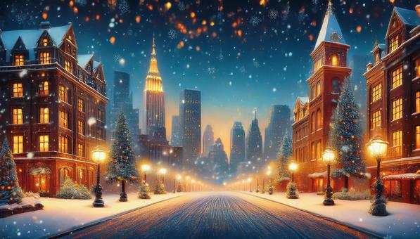 薄く雪の積もる中世ヨーロッパ風な街_背景