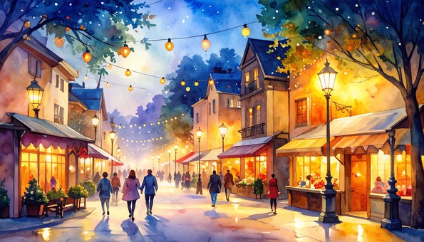 中世ヨーロッパ風な街並みとカフェ_背景画
