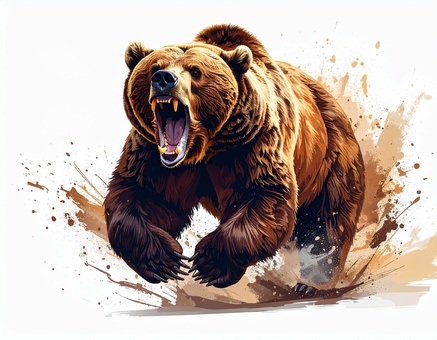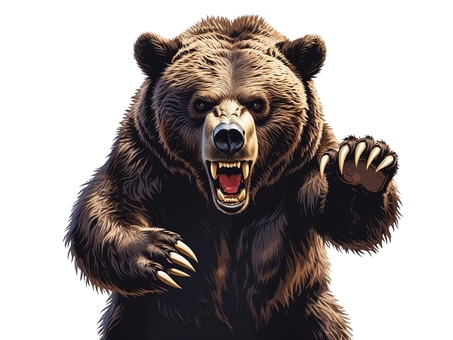 白背景に威嚇する恐ろしいヒグマ