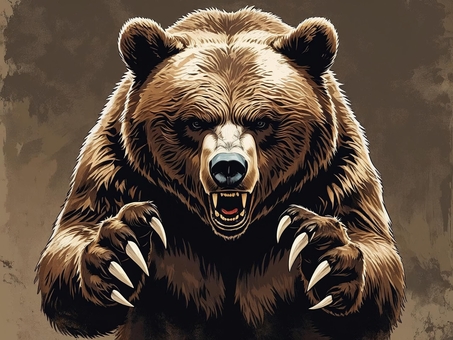 リアルな襲いかかる四足歩行のヒグマ