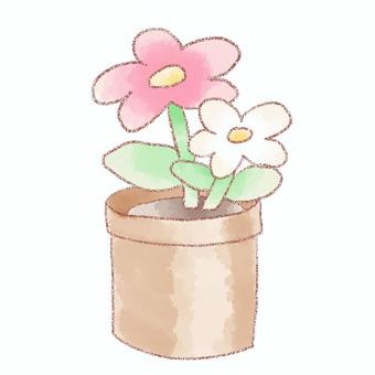 大きな植木鉢に咲くお花を見るゆるうさぎ