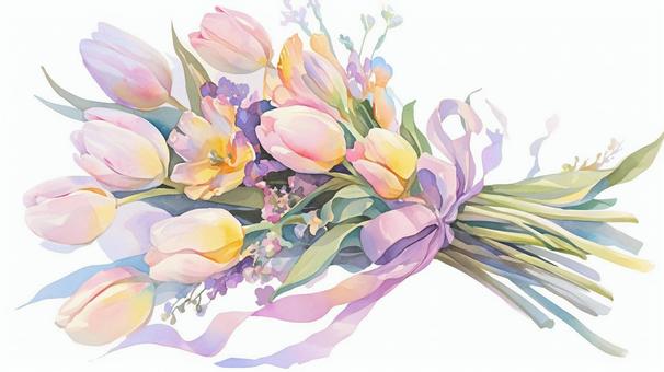 水彩風チューリップ花束
