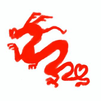ハートしっぽの朱色の手描き辰
