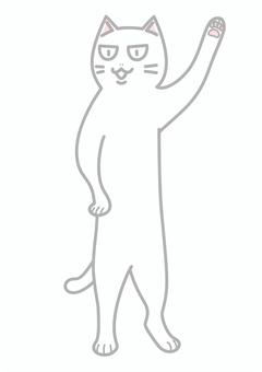片手を挙げる白猫