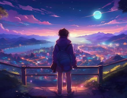 夜の展望台と人影