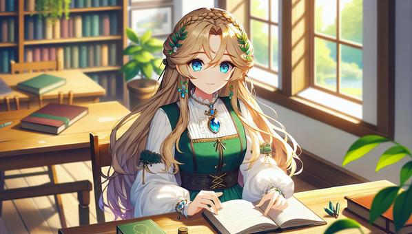 読書をする金髪エルフ