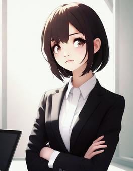 腕組みするスーツの女性