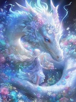 天から舞い降りる白龍と桜の女神