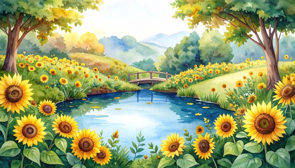 ヒマワリの花に囲まれた可愛い花屋の店員