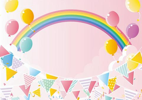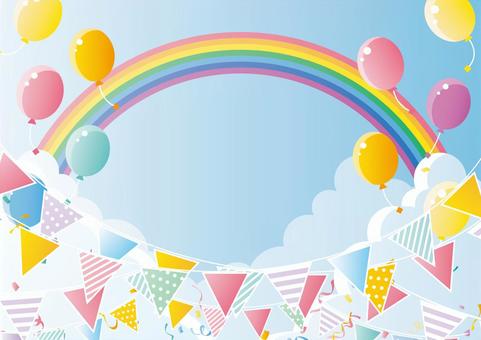 ゴージャスな虹と飛行機の旅行イメージ素材