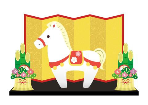 年賀状素材 金屏風と白い午の置物